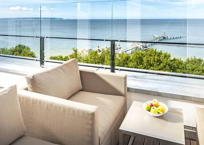Villa Philine - Penthouse 28 Mit Panoramablick, Pool, Spa & Kamin med 2 sovrum, som ligger inom 15 minuter med bil från Binz hamn, har en utomhuspool med bastu och inomhuspool.